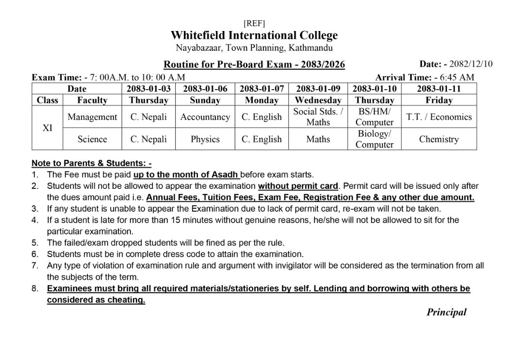 Dear Parents/Guardians, This is to notify you that "Annual Exam-2082" ...